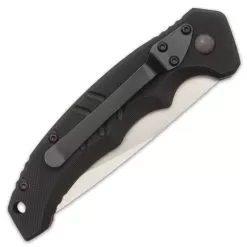 Black Serrated Automatic Knife – Stainless Steel Blade, G10 Handle, Safety Lock, Pocket Clip – Length 8″