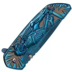 Shadow Warrior Assisted Opening Pocket Knife | DamascTec Steel Blade | Blue And Rainbow
