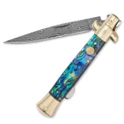 Kissing Crane Genuine Abalone Damascus Stiletto Knife