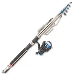 Automatic Telescoping Fishing Rod And Reel – Metal And Stainless Steel Construction, Padded Handle, Mounting Prongs – Length 8β