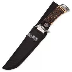 Ridge Runner Pronghorn Prairie Bowie Knife And Sheath – Faux Stag Antler Handle – Deer Hunting Knife