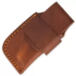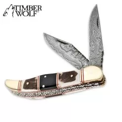 Timber Wolf Texas Trapper Knife And Sheath – Damascus Steel Blades, Wood And Bone Handle – Closed Length 4”