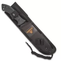 Bushmaster Black Adder Knife With Sheath – Stainless Steel Blade, Sawback, Non-Reflective Finish, TPR Handle – Length 12”