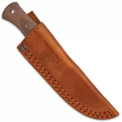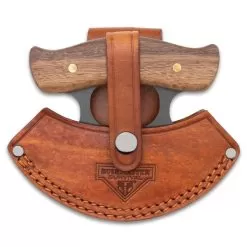 Bushmaster Wilderness Ulu Knife And Sheath – 1095 High Carbon Steel Blade, Hardwood Handle, Brass Pins – Length 4 4/10”