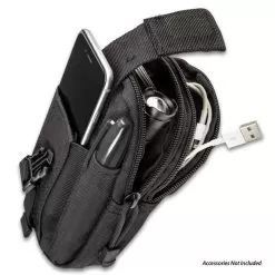 M48 Black Tactical Waist Bag With Phone Case – Heavy-Duty Nylon Construction, Multiple Pockets, Belt Straps, MOLLE – 7 1/4”x 4 3/4”