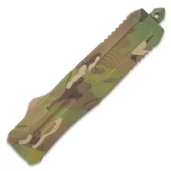 M48 Camo Automatic OTF Knife – Stainless Steel Blade, Cerakote Coated TPU Handle, Slide Trigger, Pocket Clip – Length 9 1/2″