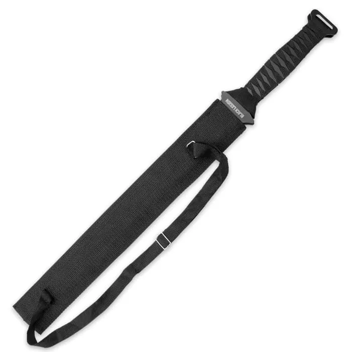 Black Legion’s “Dark Gladiator” Twin Sword Set includes two equally menacing black swords in one single potent set. Each boasts a razor sharp double-edged blade, made of strong 420 stainless steel and shrouded in a brooding nonreflective black coating. The blades’ innovative profiles are a modern take on the iconic “gladius” wielded by gladiators and the throngs of battle-hardened soldiers in ancient Roman legions. Just the right balance, size and weight for simultaneous, one-in-each-hand use, both swords are pleasures to wield, thanks to comfortable, water-resistant black nylon cord-wrapped handles. The Dark Gladiator set includes a handy nylon sheath that protects both swords simultaneously. Sling it over your back or shoulder with the durable black nylon carrying strap for quick access and perpetual battle-readiness. If you donβt yet have a twin sword set in your collection, the Black Legion Dark Gladiator Set is a fierce yet affordable place to start. Even if your collection is brimming with swords, daggers and knives of all shapes and sizes, it just isnβt complete without the savage beauty of these potent black bladed gems.