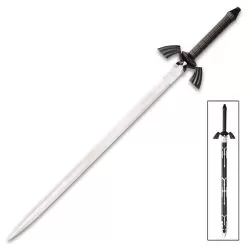 If youβre a fan of the popular game, our Black Zelda Sword and Scabbard is an absolute must-have for your fantasy sword collection! The 26 3/4β, false-edged blade is high-polished stainless steel, extending from the carefully crafted TPU handguard. The reproduction sword has a deep-grooved handle that is crafted of heavy-duty black TPU to match the handguard. The 36β overall gaming fantasy sword snaps securely into its matching black and silver accented TPU scabbard.