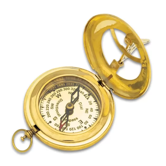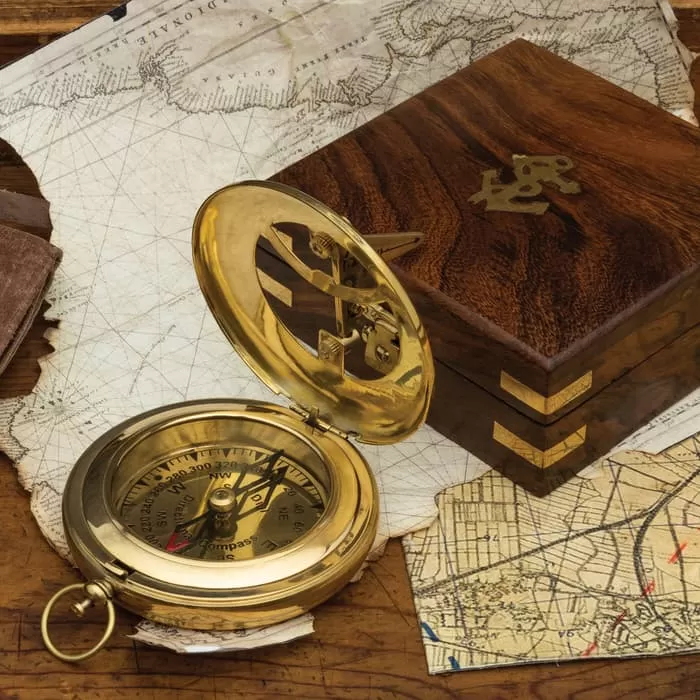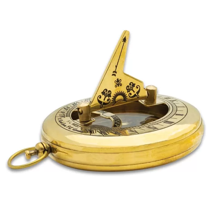 Brass Sundial Compass With Wooden Box – Brass And Glass Construction, Fully-Functioning