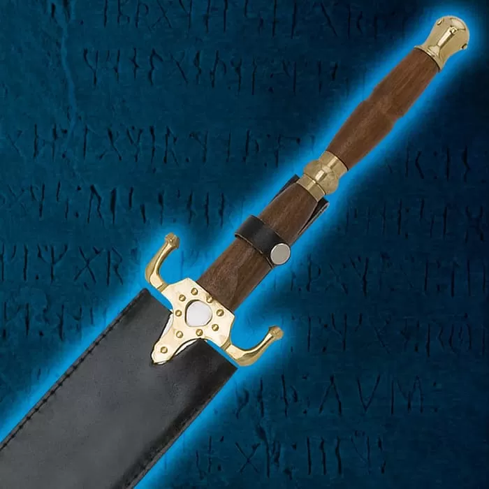 This Celtic Warrior Sword stretches 30 1/4″ and is equipped with an 18 7/8″ stainless steel blade with heavy blood groove extending down the center. The handle is constructed from solid hardwood and is accented with brass guard, pommel, and center spacer.