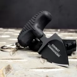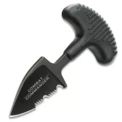 The Combat Commander Mini Black Push Dagger is the best little self-defense friend youβll ever have! When we say itβs discreet, weβre not kidding! The push dagger is 2 3/4β overall and has a black stainless steel blade with prominent serrations. It may be tiny, but it does mean business. The push handle is strong TPR rubber and has a comfortable, no-slip grip. The blade is housed in a polypropylene sheath with a stainless steel clip and ring so that it can be easily clipped wherever you need it. It fits perfectly on your keychain.