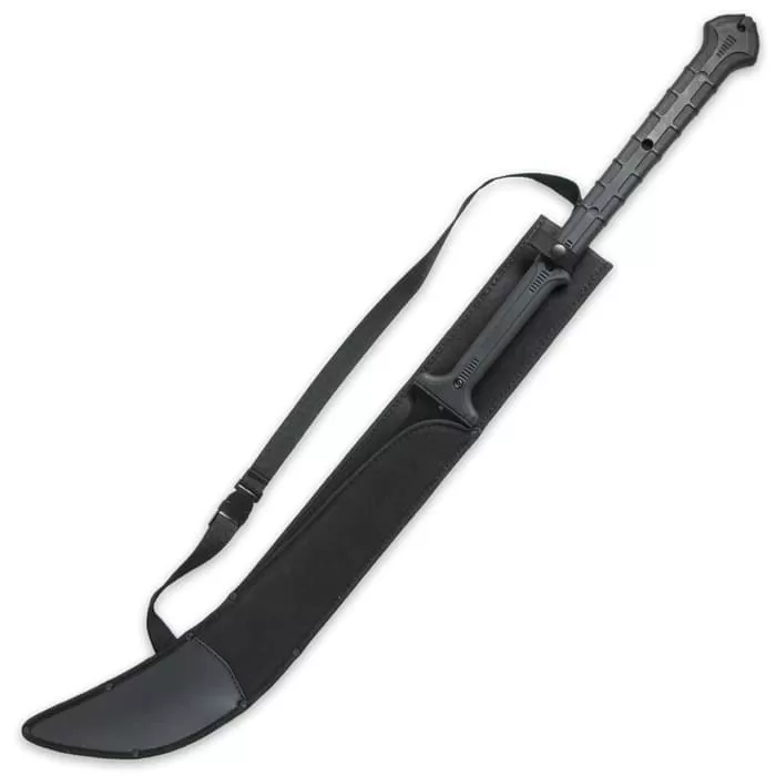 You will be absolutely combat ready with the Combat Commander Thai Nagi Sword in your hands. The 20″ sharp blade is of 1065 carbon steel and has a black hard coating finish. The handle is of nylon fiber and is as tough as they get! A nylon sheath with a shoulder harness lets you carry it with ease. Combat Commander gives you the highest quality and sharpest blade around. Add this incredible sword to your collection – you’ll thank us later!