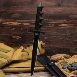 Combat Commander V42 Stiletto Dagger And Sheath – 1065 Carbon Steel Blade, Cast Aluminum And TPR Handle