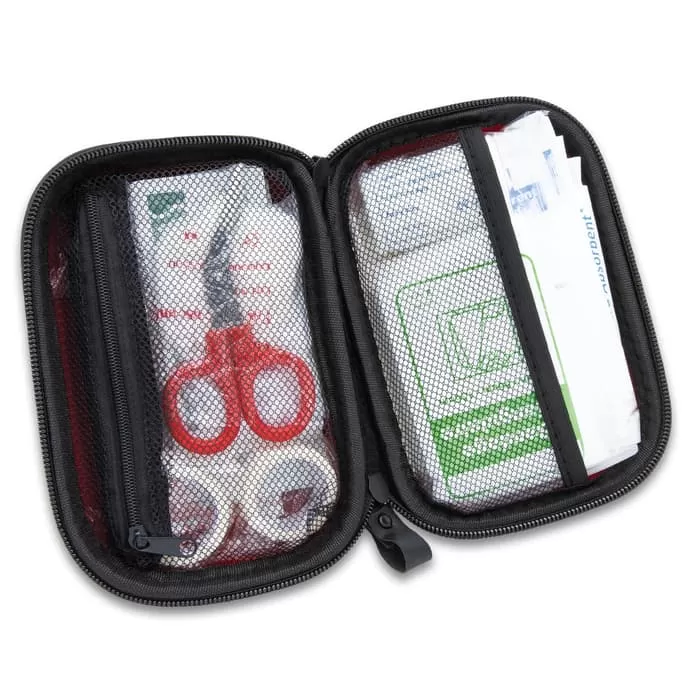 Compact First Aid Travel Kit – Assortment Of Basic Supplies, 85 Pieces, Zippered EVA Case, Carabiner