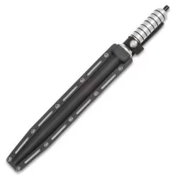 A spiraling triumph of design, our Grey Titanium Spiral Dagger is a powerful ally whenever things get down and really dirty! It has a 11 1/2β grey titanium-coated, stainless steel, quad-edged blade with thru-holes and it spirals down to a sharp piercing point. The stainless steel handle has TPR rings to give you a slip-free grip and there is a hidden compartment in the pommel, plus, a lanyard knob. The 16 1/2β overall quad-edged knife comes in a custom-fit, tough TPU belt sheath, which also has steel lashing holes. The Grey Titanium Spiral Dagger is definitely a friend you can count on!