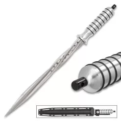 Grey Titanium Spiral Dagger With Sheath – Stainless Steel Construction, Quad-Edged Blade, Hidden Compartment – Length 16 1/2β