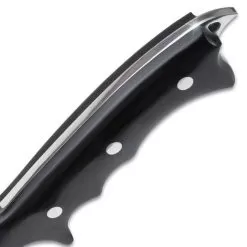 Renowned knifemaker Gil Hibben has been designing and producing top quality edged collectibles for more than 50 years. His son, Wesley, has been making and designing custom knives for more than 25 years. For the first time ever, Gil and Wes have teamed up to create this priceless collectible. The Hibben Legacy Combat Fighter boasts a razor sharp 5 7/8″ 7Cr17 stainless steel blade with a stinging spear point tip. Polished black pakkawood handle scales wrap the full tang blade for a stylish, smooth grip. A raised thumb rest on the back of the blade and a trigger-finger grip allows for excellent control when wielding this knife. Each blade is laser serialized and etched with Gil and Wesley Hibben’s signatures. Includes a custom leather sheath stamped with the “Hibben Knives Custom Design Series” logo. This unique collectible should be passed down for future generations to enjoy. Measures 12″ overall.