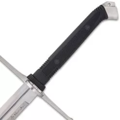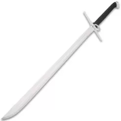 The Honshu Boshin Grosse Messer Sword is an exceptional addition to the Boshin line of tactical weapons, which blends tradition and innovation and style and function. The grosse messer sword boasts a 31β 1060 high carbon steel blade thatβs unrivaled in sharpness and strength. Textured TPR shrouds the handle for an ergonomic no-slip grip and the handle has an oversized polished steel pommel and guard. The sword has an overall length of 42 1/8β.