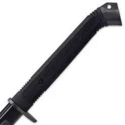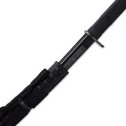 The Midnight Forge Katana is part of a Honshu special edition series that takes the popular sword to a new level of modern and sleek design with tactical engineering and perfect blade-to-hilt balancing. The katana has a 30 3/8β black 1060 high carbon steel blade, making it unrivaled in sharpness and strength. Trading traditional trappings for sleek contemporary style, the cutting edge Boshin is an undeniably modern weapon. Textured TPR shrouds the handle for an ergonomic no-slip grip and the handle is crowned with an oversized grey tini-finished steel pommel. The guard snubs fanciful ornamentation in favor of a practical pointed ellipse design. In keeping with the Boshin katanaβs clean, functional motif, the scabbard is wooden with a semi-gloss black finish and features black faux leather wrapping and cotton cord. Wielding the Honshu Boshin Midnight Forge Katana is almost Zen-like – you just have to experience it for yourself!