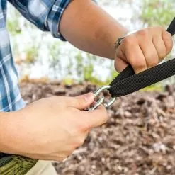 The Intense Mosquito Net Covered Hammock Travel Bed is ideal for those who don’t want to carry a tent but want protection from insects when camping or backpacking. The lightweight, breathable hammock is made of strong, olive drab parachute nylon and the fine mesh mosquito netting is built into the hammock, allowing you to sleep soundly and safe from mosquitoes and insects. A spacious and supremely comfortable sleeping bed, the mosquito net is secured with a sturdy zipper and the two included guy ropes allow ample length to hang and support the net section of the hammock way above you for a restful night of sleep in the great outdoors. When you don’t need the mosquito net, just flip the hammock over and use it as a conventional hammock for a nice afternoon nap at the campsite or even in your backyard. When folded into its attached stuff-sack, the hammock is so compact you won’t even know it’s in your backpack. The hammock is approximately 7 1/2’ x 4’, weighs only 24 oz and will hold up to 440 lbs. Included are two steel carabiners, two nylon webbing suspension straps and two hanks of 10’ guy line rope.