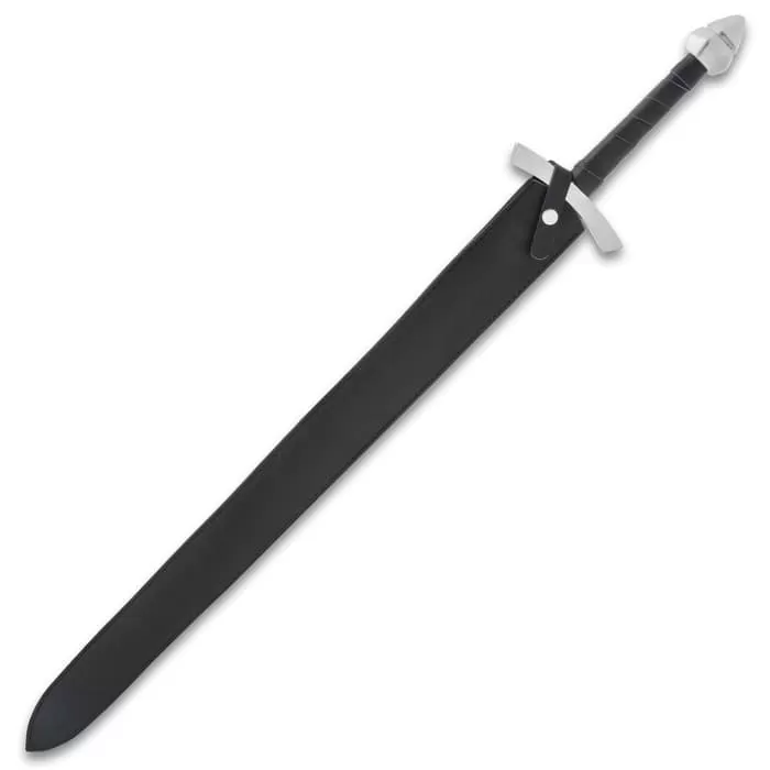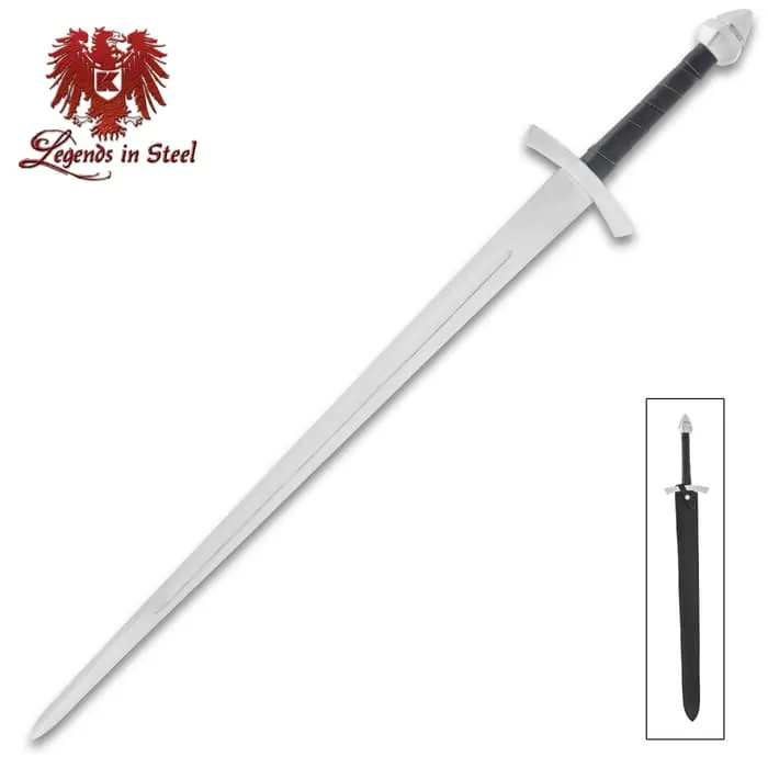 Legends In Steel Medieval Knight Long Sword And Scabbard – 1095 Carbon Steel Blade, Leather-Wrapped Grip