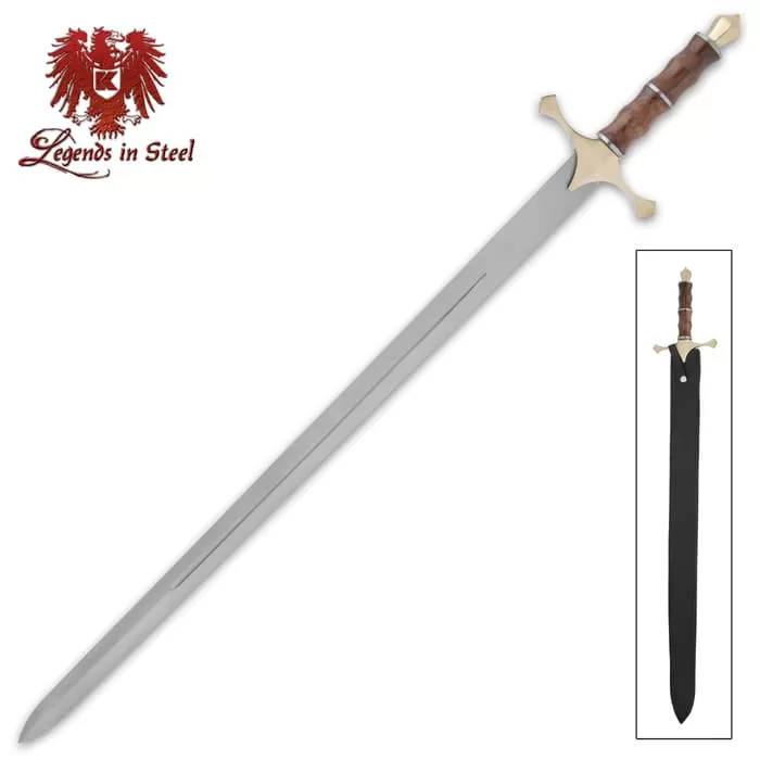 Legends In Steel Mount Carmel Sword And Scabbard – Stainless Steel Blade, Wooden Handle, Brass Cross-guard And Pommel