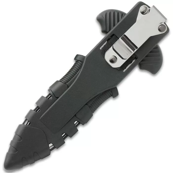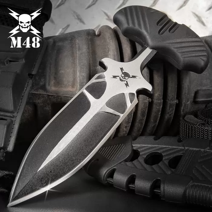Offering a range of weapons built for battle, United Cutleryβs M48 Fang I Tactical Push Dagger is the absolute in discreet self-defense perfection! It has a 4 1/2″ cast stainless steel blade with a black oxide coating with satin finish highlights and a penetrating point. The finger-grooved, push handle is crafted of tough TPR and is heavily ridged for a secure and slip-free grip when using. The 7 3/8β overall push dagger can be carried and protected in an injection molded Vortec sheath with a steel boot clip. You can always count on United Cutlery to put out products that work in the real world!