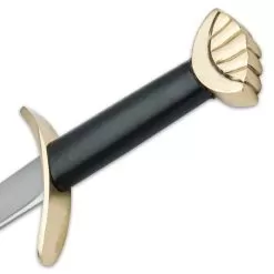 This medieval design is quickly recognized as the preferred sword of the Norsemen who terrorized Europe for nearly 400 years. This historical replica features a 30″ polished, high carbon steel blade with a heavy blood groove. The authentic styled handle offers a wooden grip with imitation leather wrap and a solid brass guard and pommel. This historical replica is perfect for historical reenactments, costumes and theatrical productions.