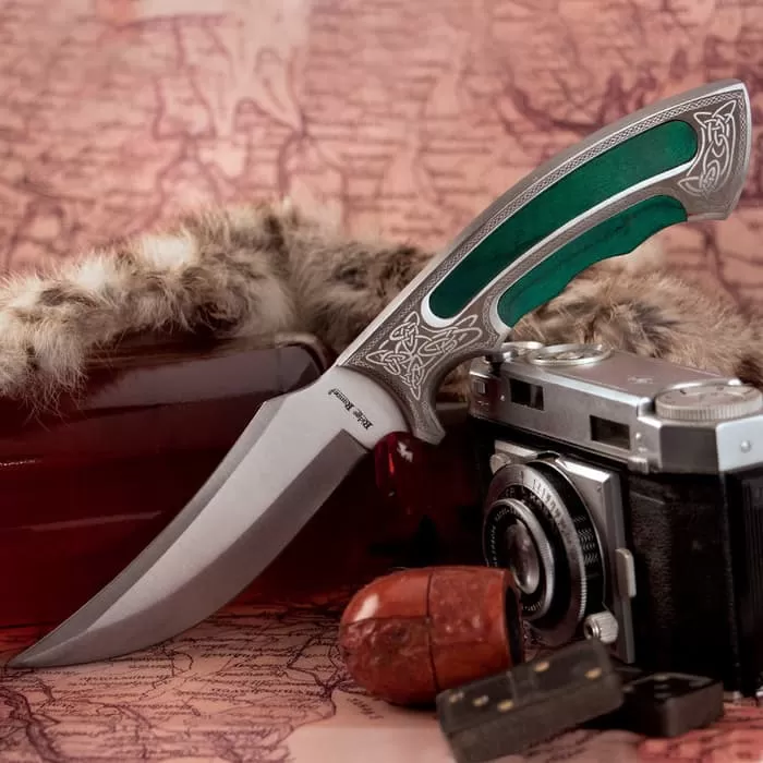 Commemorate your Celtic heritage and pride with this Celtic Elite Fixed Blade Knife, only from Ridge Runner. This bowie offers quality stainless steel construction and green wood inserts, accented by Celtic knot and scrollwork designs laser-etched into the stainless steel pommel and guard. A truly handsome knife for any Celtic gentleman!