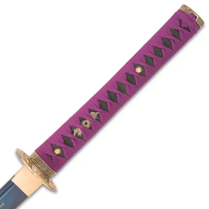 Shinwa Purple Serpent Katana And Scabbard – 1045 Carbon Steel Blade, Genuine Rayskin, Hardwood Handle, Metal Alloy Tsuba – Length 41β