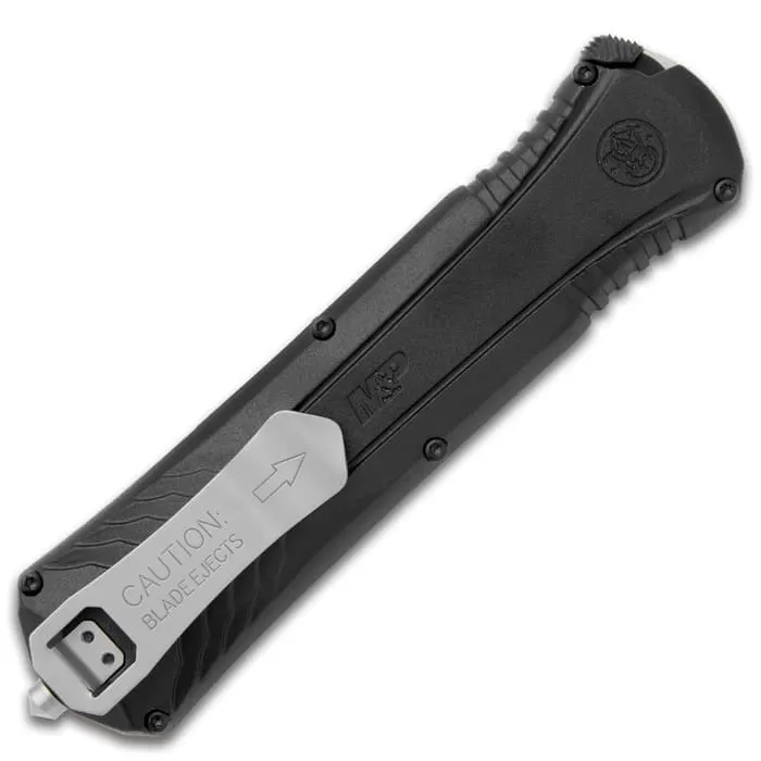Smith & Wesson Bead Blasted OTF Pocket Knife – AUS-8 Stainless Steel Blade, Aluminum Handle, Glassbreaker – Length 8 7/10β