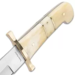 Timber Rattler Camel Bone Bowie Knife – Two-Knife Set With Leather Twin Sheath