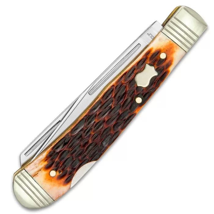 Timber Wolf Rustic Bone Trapper Pocket Knife – Stainless Steel Blades, Jigged Bone Handle, Double Lockback
