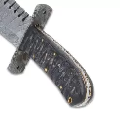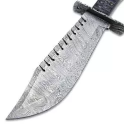 Timber Wolf Shark Back Knife And Sheath – Damascus Steel Blade, Wooden Handle, Lanyard Hole – Length 15 1/2″