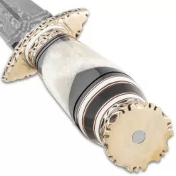 Timber Wolf Zulu Dagger And Sheath – Damascus Steel Blade, Bone Handle, Fileworked Guard And Pommel – Length 12 3/4β