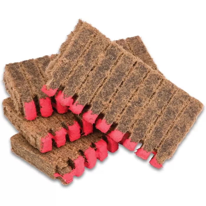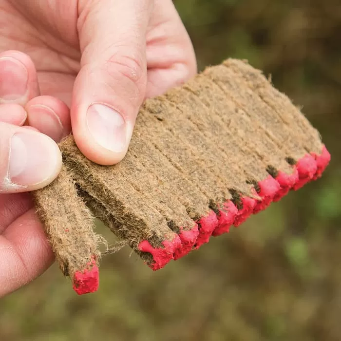 Lights like a match, burns like a starter log and replaces both! Thanks to these match / fire starter stick hybrids from Trailblazer, building a long-lasting campfire, lighting a grill or starting a fire in your home fireplace has never been easier! A match head caps the end of each fire starter in this convenient 40-pack, eliminating the need for a separate cigarette lighter, grill lighter or other source of flame. To light, simply scratch the red match head against one of the box’s built-in striker strips – just as you would any traditional wooden match. Once lit, each starter stick burns up to 10 minutes, so there’s no need for kindling, fatwood / “lighter,” or separate fire starter logs. All-natural and clean-burning, these eco-friendly fire starter sticks are made of only compressed wood chips and paraffin wax – no harmful chemicals, solvents, artificial dyes, adhesives, dangerous combustibles or other hazardous materials. And unlike lighter fluid, these natural fire starters won’t impart food with foul odors, objectionable flavors or poisonous vapors, so they’re perfect for lighting charcoal grills, wood smokers or campfires used for hot dog- and marshmallow roasts. Must-have for vehicle winter emergency kits, camping and other outdoor gear, bug-out bags, emergency shelters, crisis caches, home fireplaces, woodstoves and much more. Stop wrestling with cigarette lighters and kindling, and never serve “chemical-tasting” grilled food again – stock up on Traiblazer Match Head Fire Starter 40-Packs today!