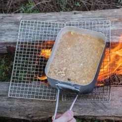 When you go camping, you don’t want to overload your backpack with bulky equipment, especially, when you’re hiking quite a way to your campsite. The Trailblazer Two-Pack Mesh Grill offers a compact means to provide a stable platform for your cookware, when you’re cooking over the campfire. Each of the two, 9 1/4”x 5” stainless steel grills is a thick, welded mesh screen that won’t sag during use. Both of the grills can be conveniently stored and carried in the included nylon drawstring bag.