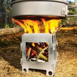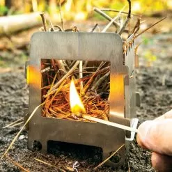Lightweight and compact, the Trailblazer Ultralight Folding Camp Stove folds flat in seconds to fit into just about any pocket in your camping gear, backpack or bugout bag. The strong stainless steel construction creates a stable platform for your cookware and the ultralight stove only weighs 5 oz, adding almost no weight to your pack. It has air vents for good ventilation and efficient burning with an opening for conveniently adding fuel. You have an unlimited fuel source because you can cook a meal using twigs, branches and leaves. A stainless steel tray is also included to hold a solid fuel cube. The compact and portable stove comes inside a 6 3/4βx 5 1/2β, sturdy nylon pouch with a Velcro closure for transport.