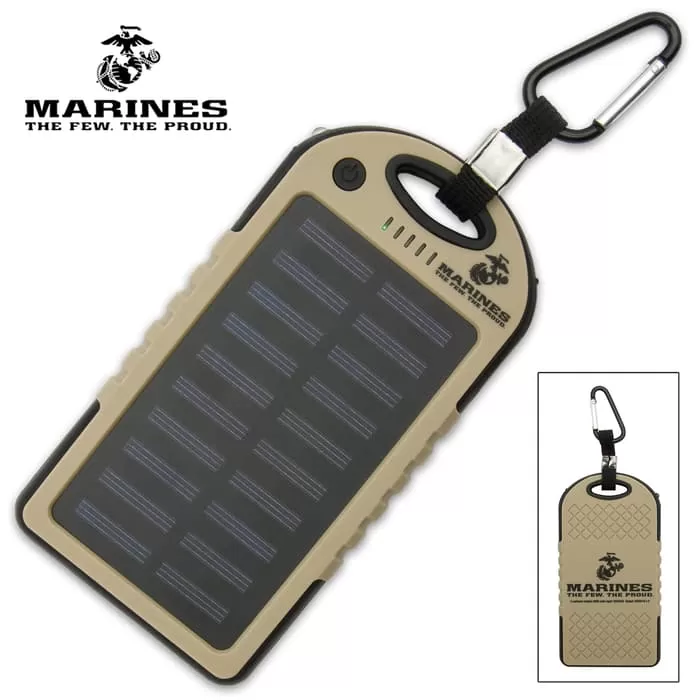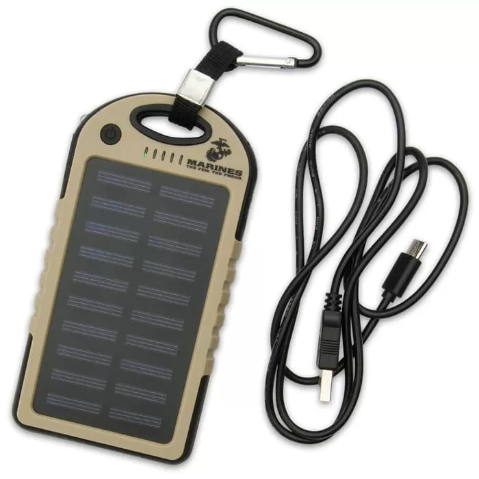 USMC 8,000 MAH Solar Charger And Power Bank – Monocrystalline Solar Panel, Li-Polymer Battery, Water-Resistant