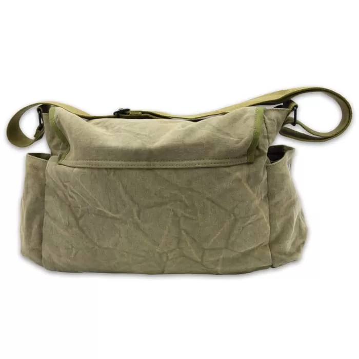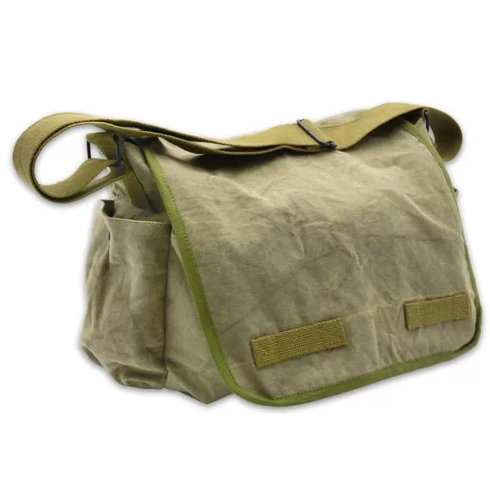 Washed Olive Drab Messenger Bag – 100 Percent Cotton Canvas, Nylon Webbing Shoulder Strap, Velcro Closures, Pockets