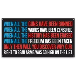 When All Guns Have Been Banned Tin Sign – Vibrant Artwork, Corrosion Resistant, Mounting Holes – Dimensions 16βx 8 1/2β