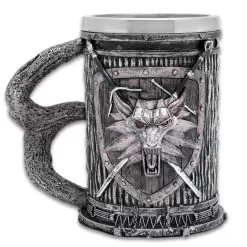 Witching Wolf Head And Sword Mug – Sculpted Polyresin Construction, Stainless Steel Liner, Felt-Lined Bottom – 5 1/2 Tall