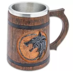 Wolf Medallion Mug – Cold Cast Resin Construction, Stainless Steel Insulating Liner, Intricate Details