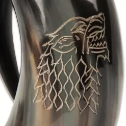 Wolf Display Drinking Horn – Crafted Of Genuine Horn, Hand-Carved Artwork, Fantasy Design, Prop Or Cosplay – 7” Tall X 5 1/4” Width